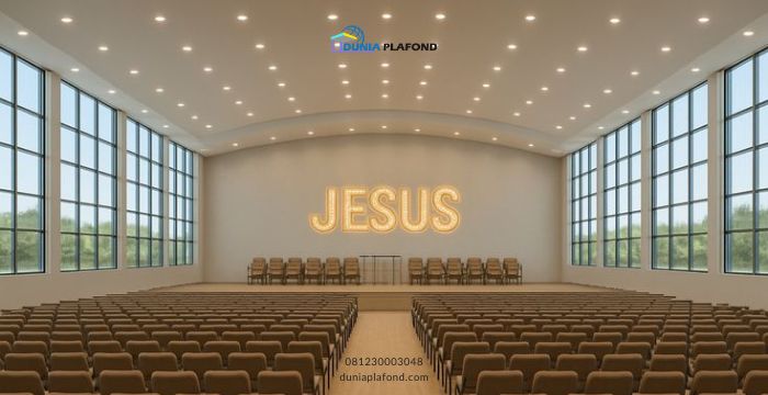 Gereja merupakan tempat ibadah yang membutuhkan suasana tenang dan nyaman. Plafon yang dirancang dengan baik dapat membantu meningkatkan kualitas akustik ruangan, sehingga suara khotbah maupun musik dapat terdengar lebih jelas dan merata. Selain itu, plafon juga berfungsi untuk menjaga suhu ruangan agar tetap sejuk serta melindungi interior dari debu dan kotoran.